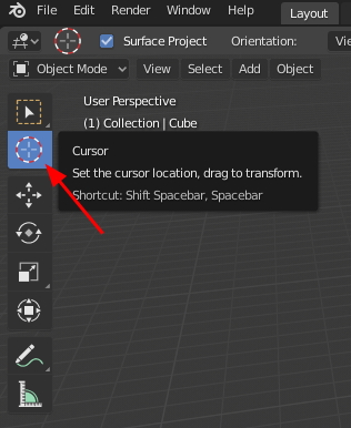 3d cursor는 Blender를 실행하면 중앙에 떡하니 있는 것, 바로 그겁니다.