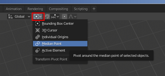 선택된 것들의 바운딩 박스의 중심을 기준으로