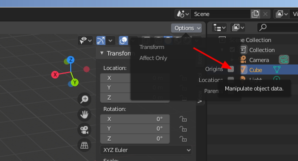 Geometry to origin : 지오메트리가 Pivor Origin으로