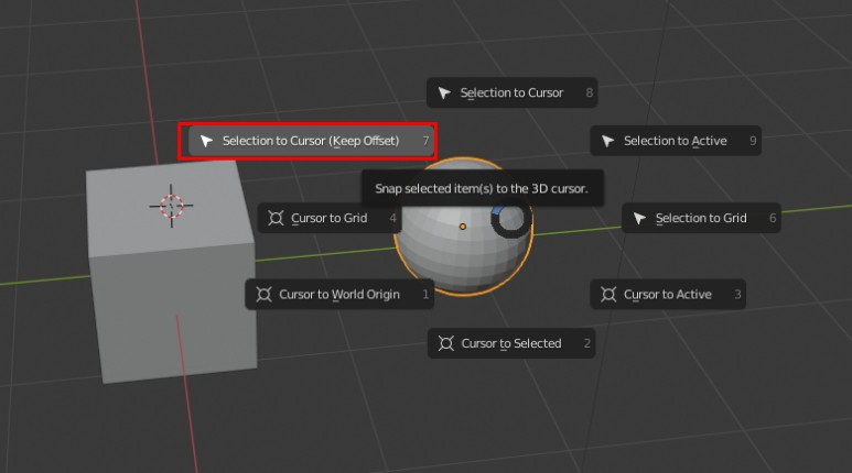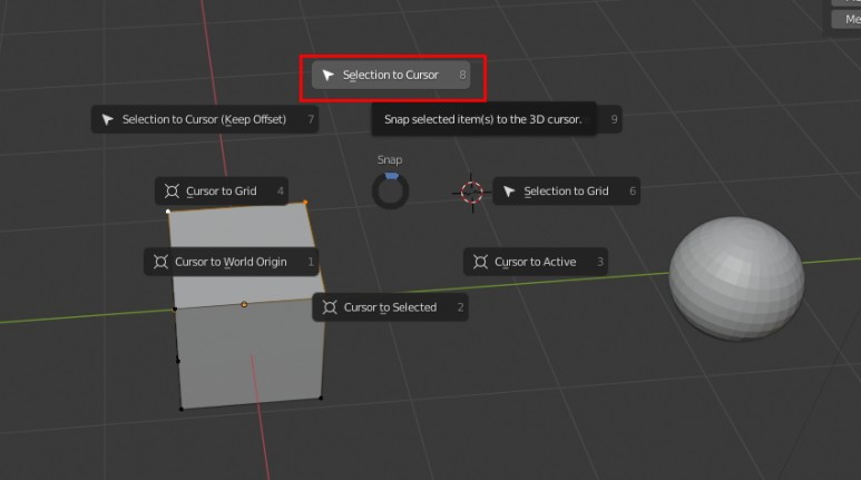 이것은 오브젝트를 3d cursor로 이동 시킴. (체크 오브젝트의 Pivot을 기준으로 이동 )