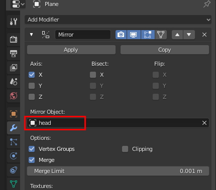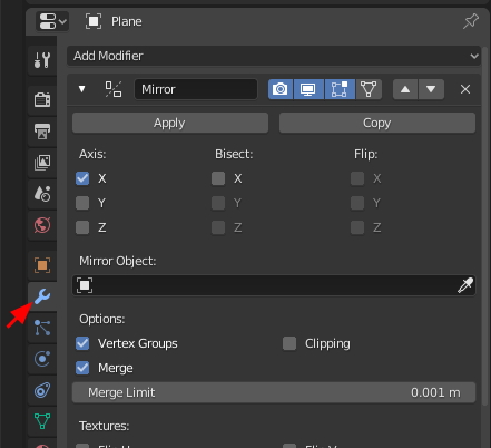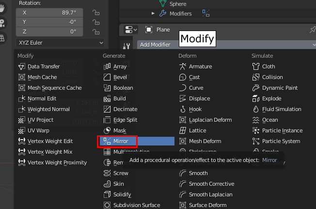 Modify에서 Mirror를 적용합니다.