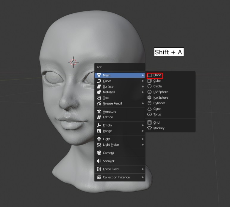 Shift + A 로 Plane을 하나 만듭니다.