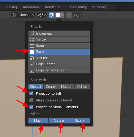 plane을 대상 오브젝트에 착착 달라붙게 만들어 주는 Snap입니다.