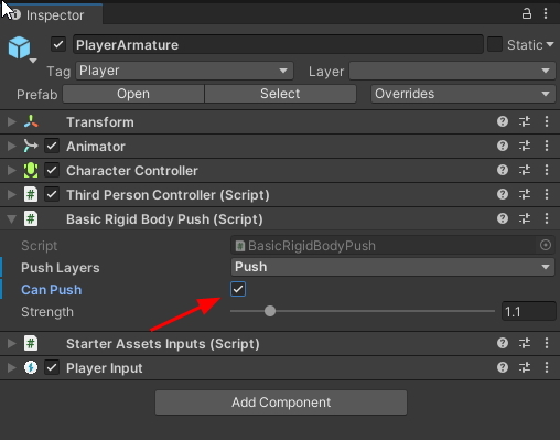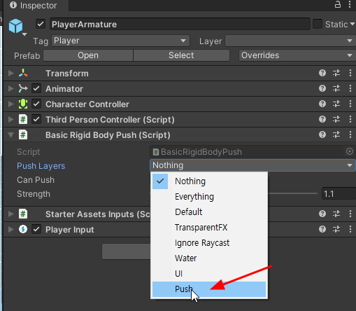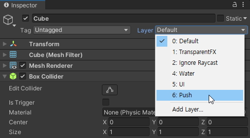 Basic Rigidbody Push : 물리적인 밀기 담당.