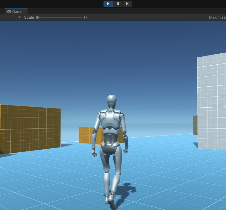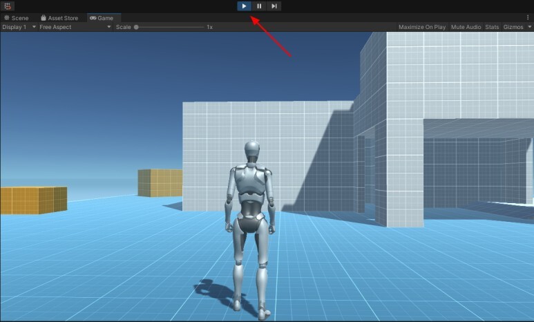 Play 버튼을 클릭하면, 마우스의 방향으로 키보드 방향으로 캐릭터가 움직입니다.