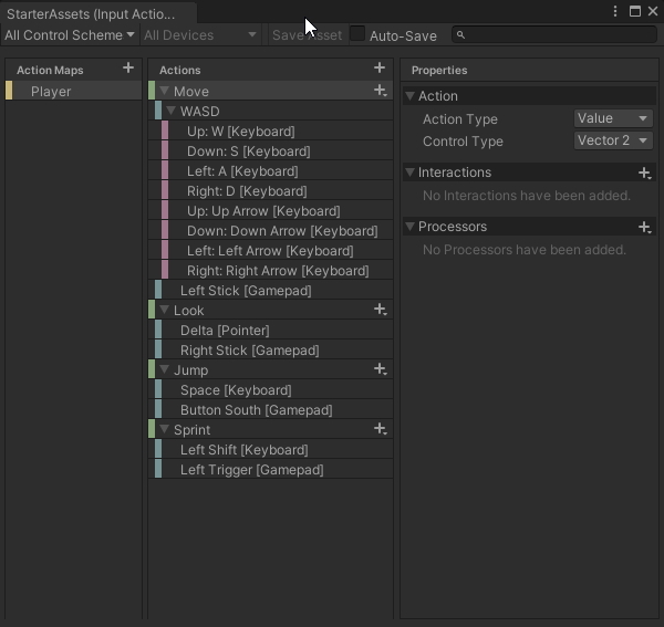 Starter Asset Inputs 인풋값 교통정리 역할을 합니다.