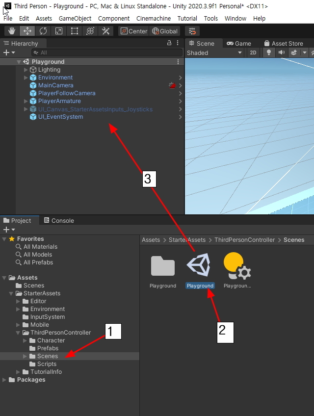 Asset에 등록이 확인되면 Scenes에서 Playground를 드래그합니다.
