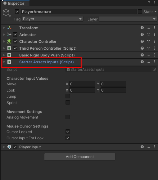 Starter Asset Inputs 에서 불러온 인풋값들을 여기서 세팅 할수 있습니다.
