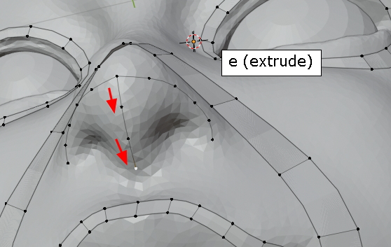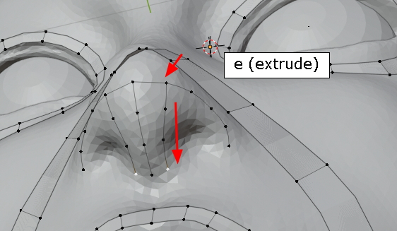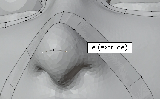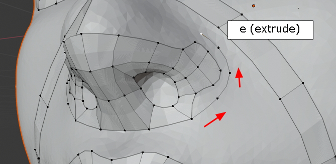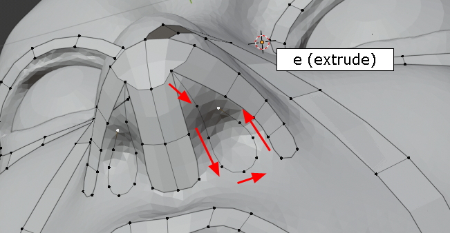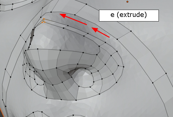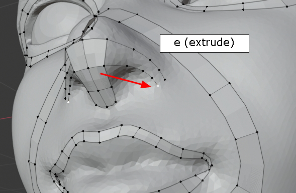 extrude, 콧구멍의 윤곽을 잡습니다.