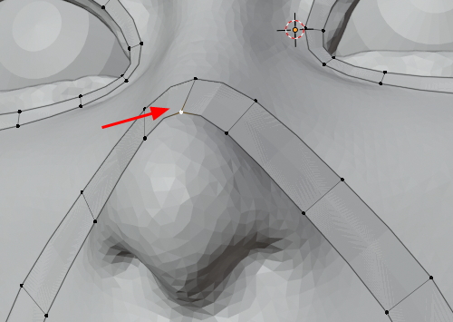 콧등의 face에서 vertex를 하나 선택합니다.