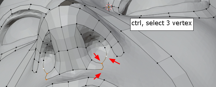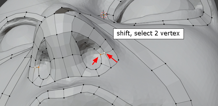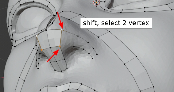 콧구멍 아래 vertex를 선택하고