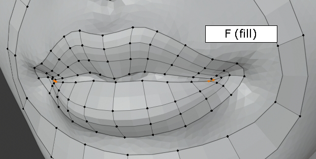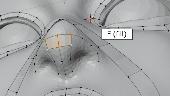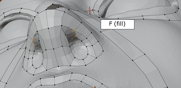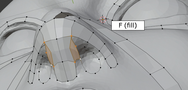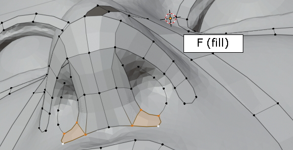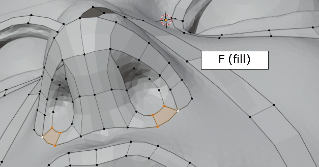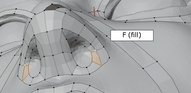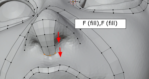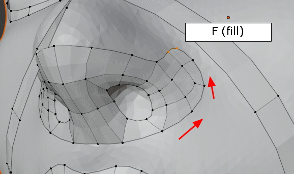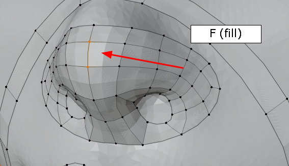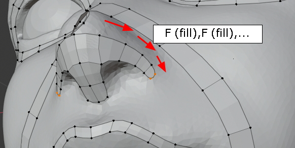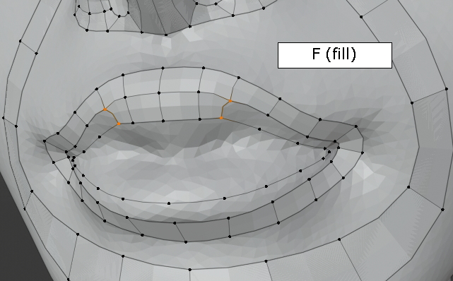 두 vertex를 선택한 상태에서 그냥, f,f,f 주욱 face가 채워집니다. (오홋)