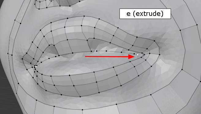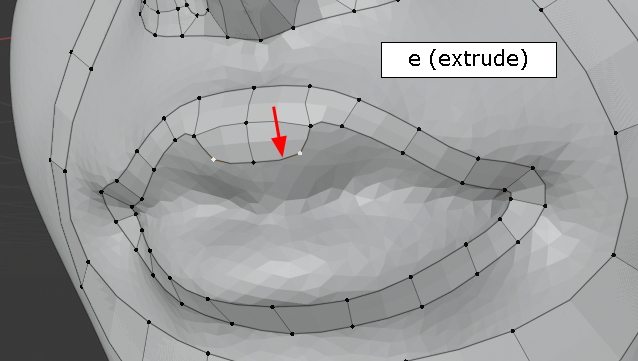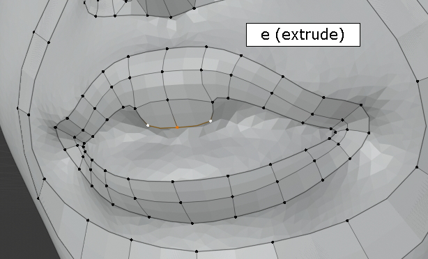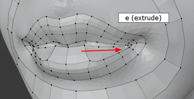 아래 입술도 Shift 키로 다중선택, Extrude