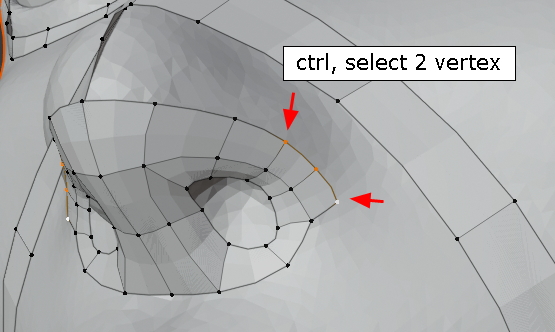 ctrl 키를 누르면서 아래와 같이 두개의 vertex를 Lmb로 선택합니다.