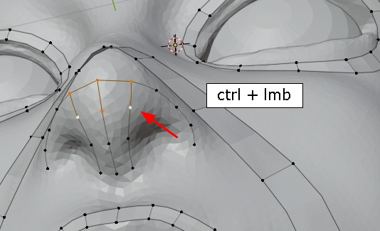 콧볼의 vertex를 Ctrl로 선택합니다.