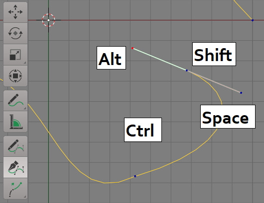 Alt : 한쪽 Handle의 Tension을 조절할 수 있습니다.