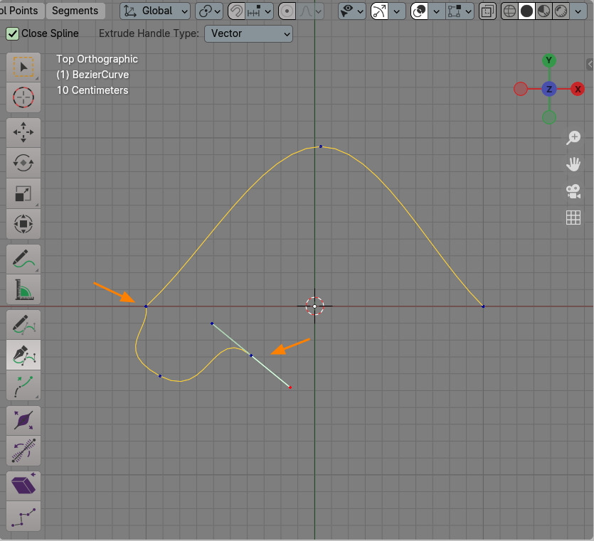 Curve의 한 Vertex를 선택한 후에 빈 공간에다 클릭하면, 선택한 Vetex에서 연장되어 나갑니다.