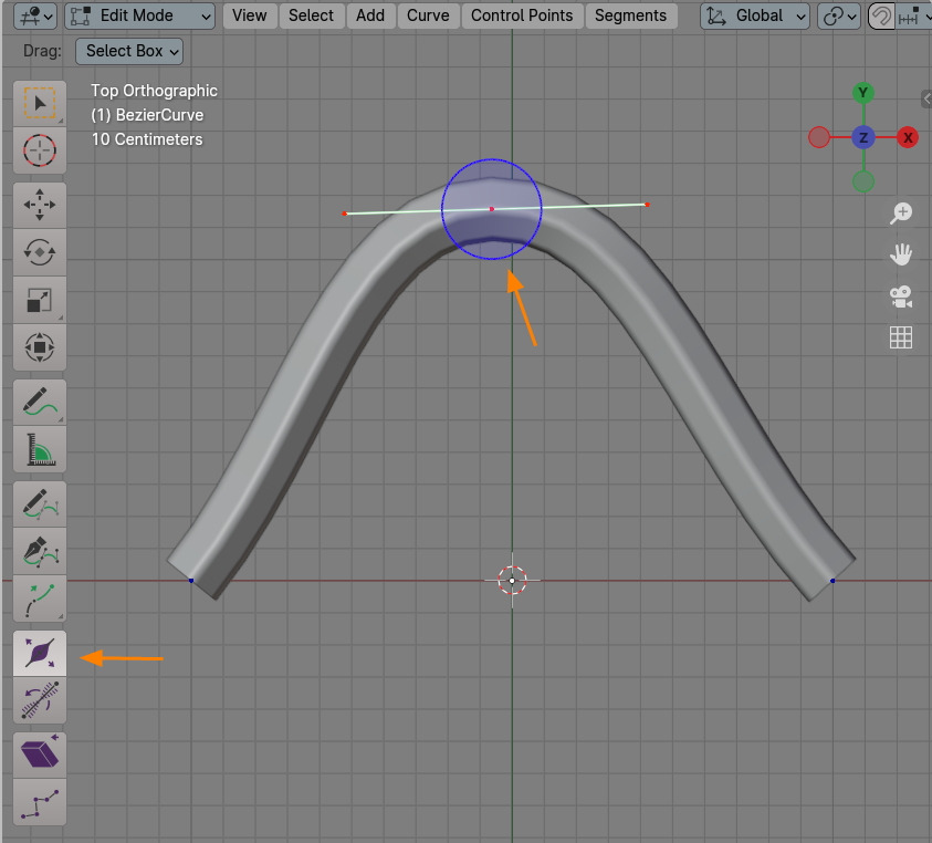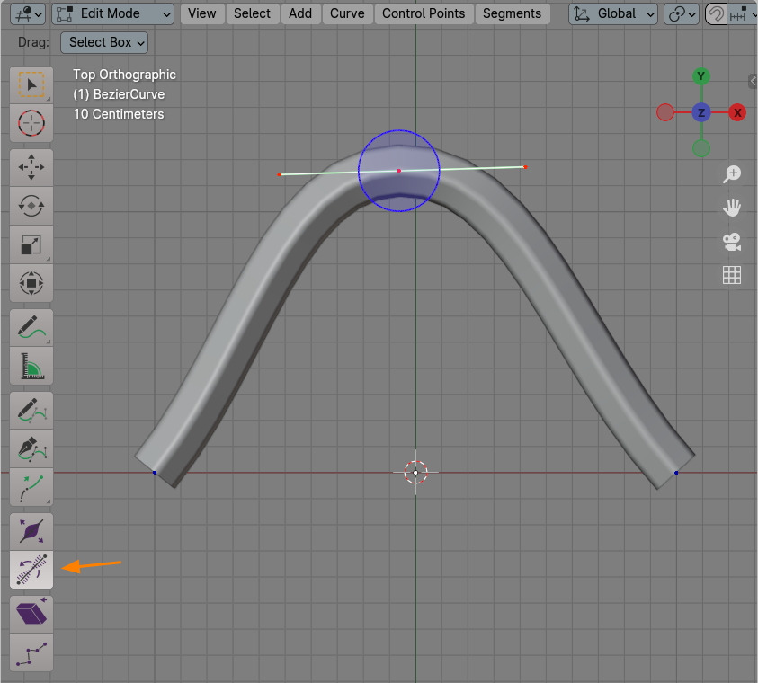 그 아래 Tilt(기울기)를 선택합니다. 역시 버텍스 주위에 원이 나타납니다.