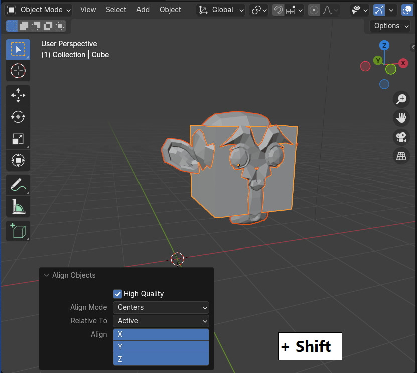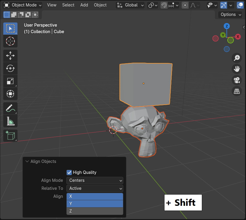 X,Y,Z 3축을 다 선택하면 두 오브젝트가 포개 질것입니다. ^^