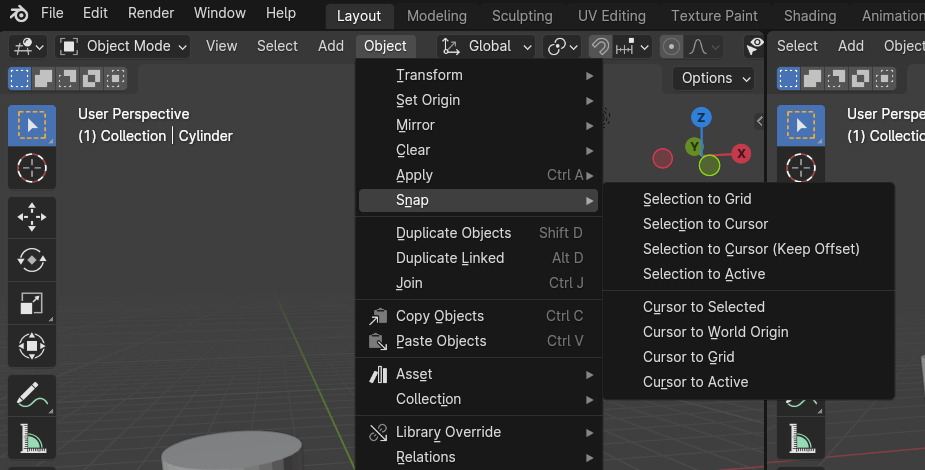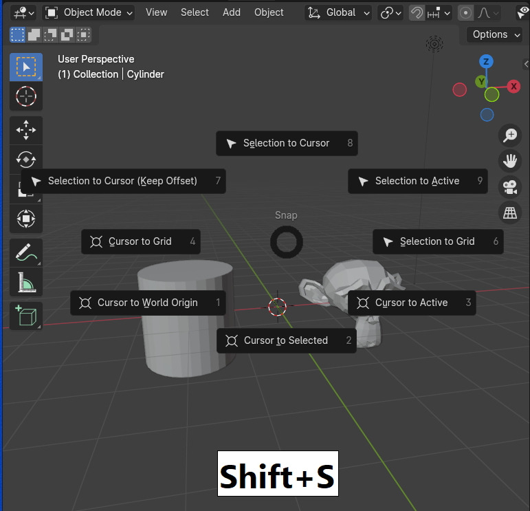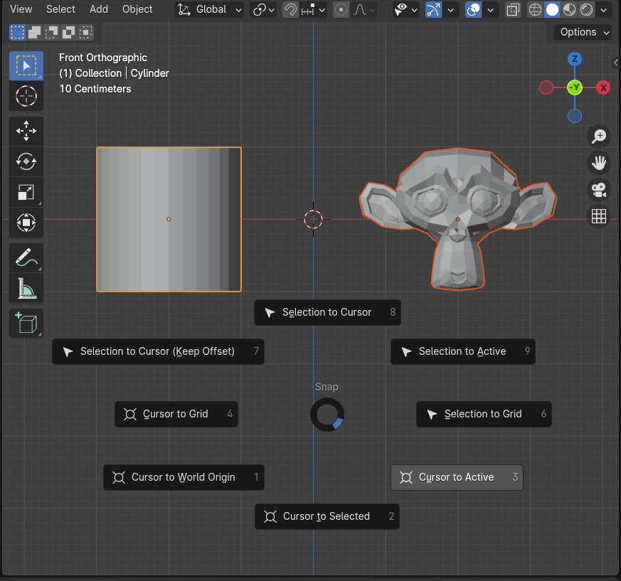 Blender의 Snap 메뉴은 아주 유용한 Align Obects 명령입니다.