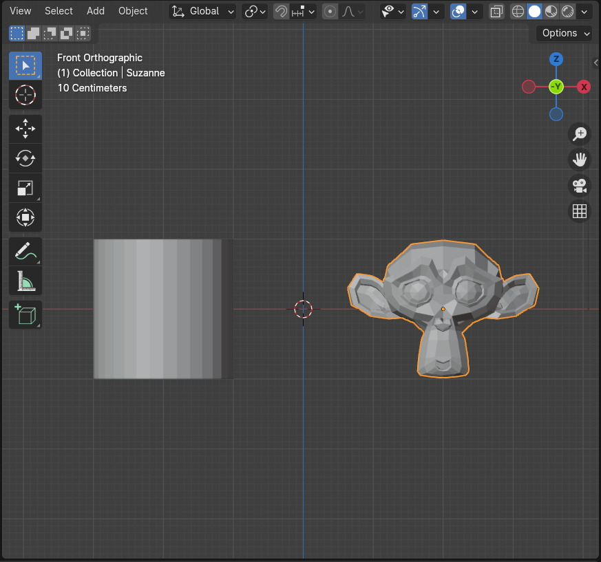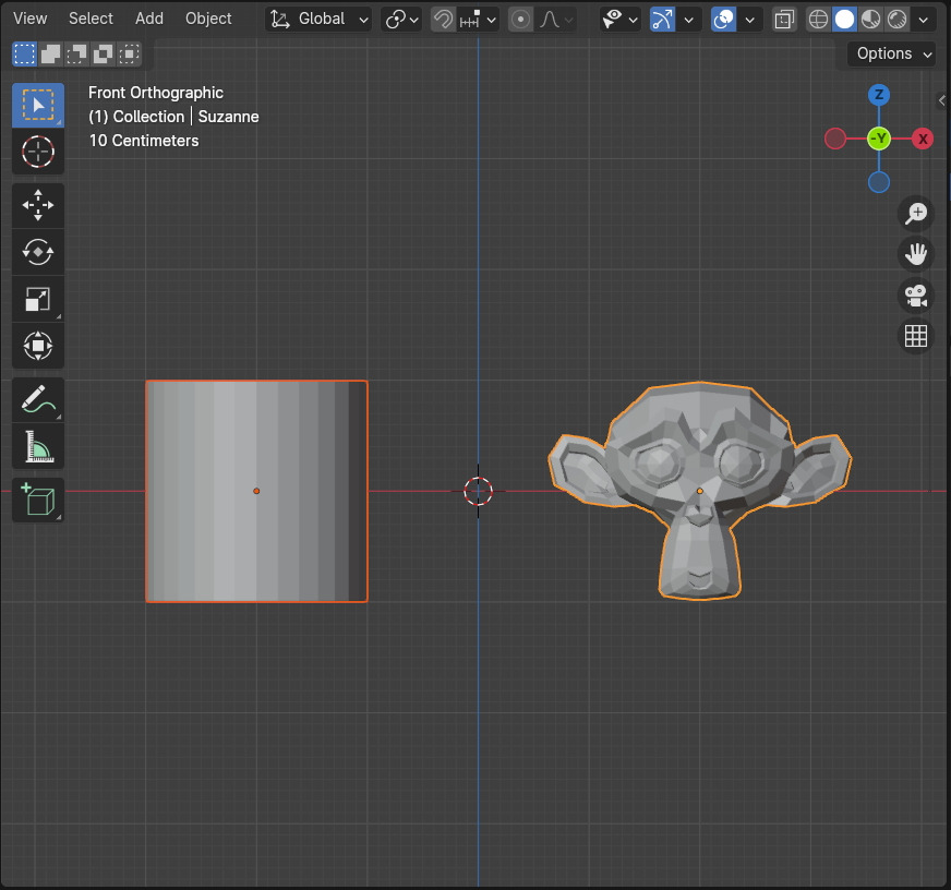3D Cursor가 선택한 오브젝트 로 정렬했습니다.