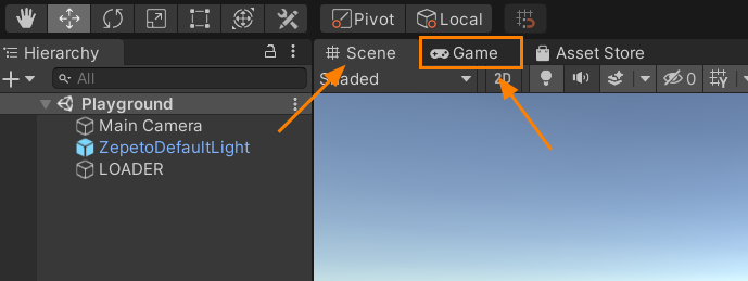 - Game View (게임 뷰 실제 화면 / 아래 인터페이스에는 Scene과 Game이 같은 위치에 다른 탭으로 있습니다. 분리할 수 도 있습니다.)