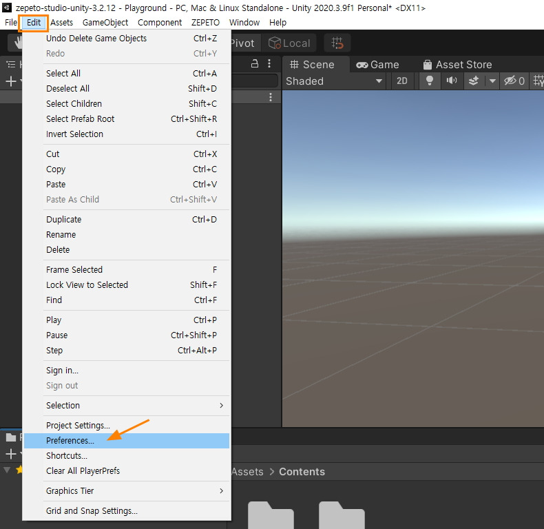 Unity의 Edit / Preperences로 들어갑니다.