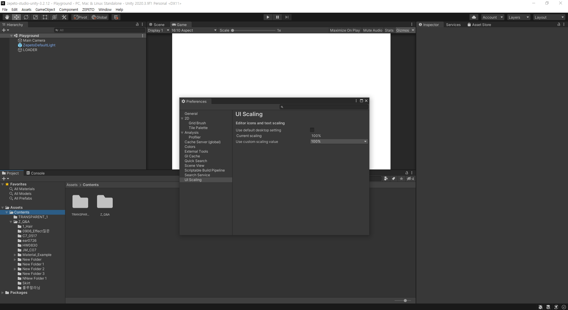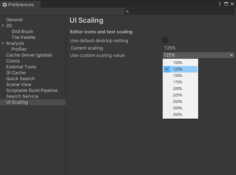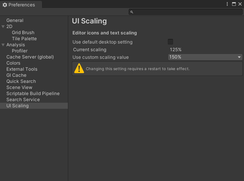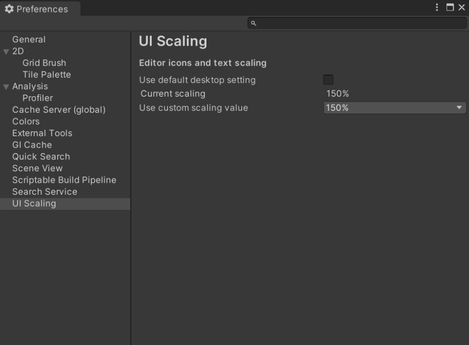 Unity 의 환경설정Preperences 에 가면 UI 크기를 변경할 수 있는데요, 그것을 알아보겠습니다.