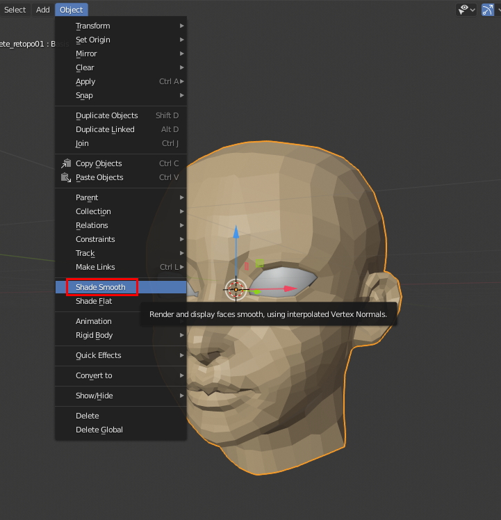 Blender, Objet 에서 flat한 face에 Normal Smooth를 주려고,