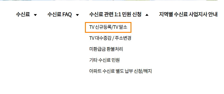4. 그러면 그 아래 메뉴가 열리는 데요, 그 중에서 'TV신규등록/TV말소'를 선택합니다.