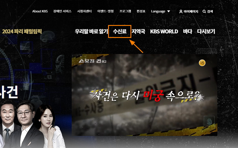 2. 상단 메뉴중 수신료 메뉴를 클릭합니다.