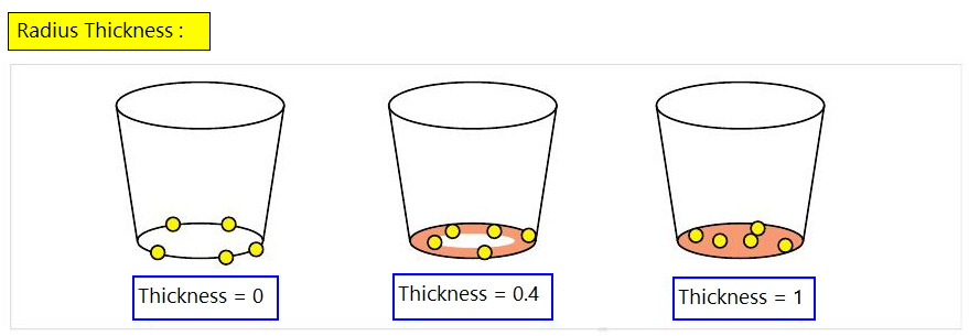 발생 모양의 원, 원호에 대해 파티클이 어떻게 생성되는지를 지정