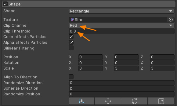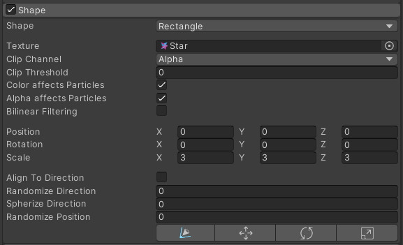 Shape 모듈로는 파티클의 발생 범위를 상세하게 설정할 수 있습니다.