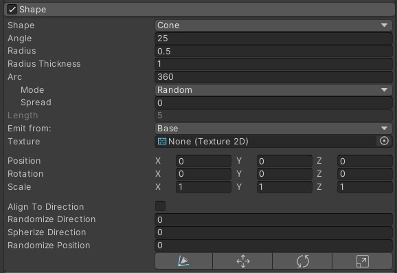 Shape 파라미터를 Cone으로 설정했을 때의 설정 항목