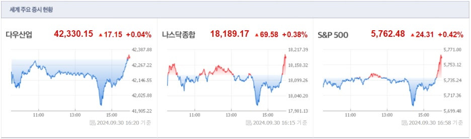 오늘 미국 증시 요약: 2024년 9월 30일(월)