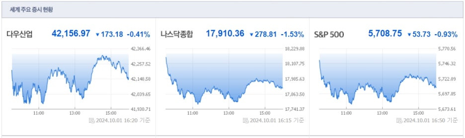 오늘 미국 증시 요약: 2024년 10월1일(화)
