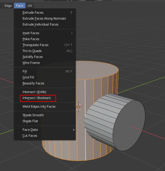 Face 메뉴에서 Intersect (Boolean)을 합니다.