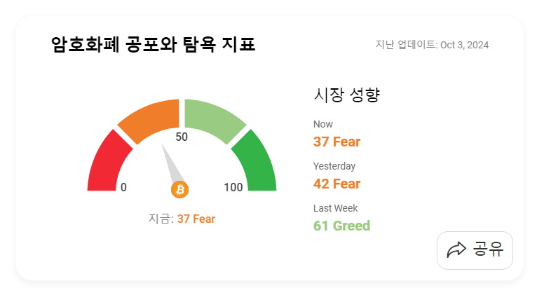 10월 2일 암호화폐 공포 탐욕 지수 (Greed and Fear Index)