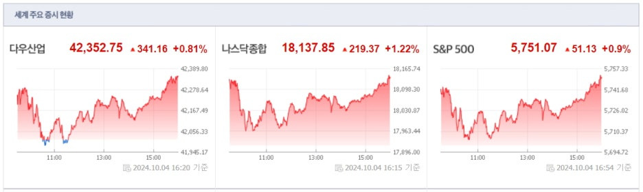 오늘 미국 증시 요약: 2024년10월 4일(금)