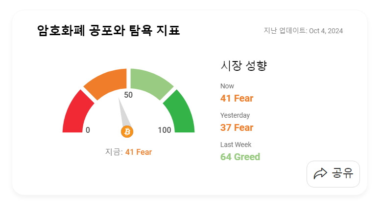 10월 4일 암호화폐 공포 탐욕 지수 (Greed and Fear Index)