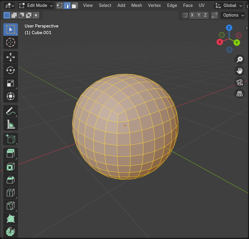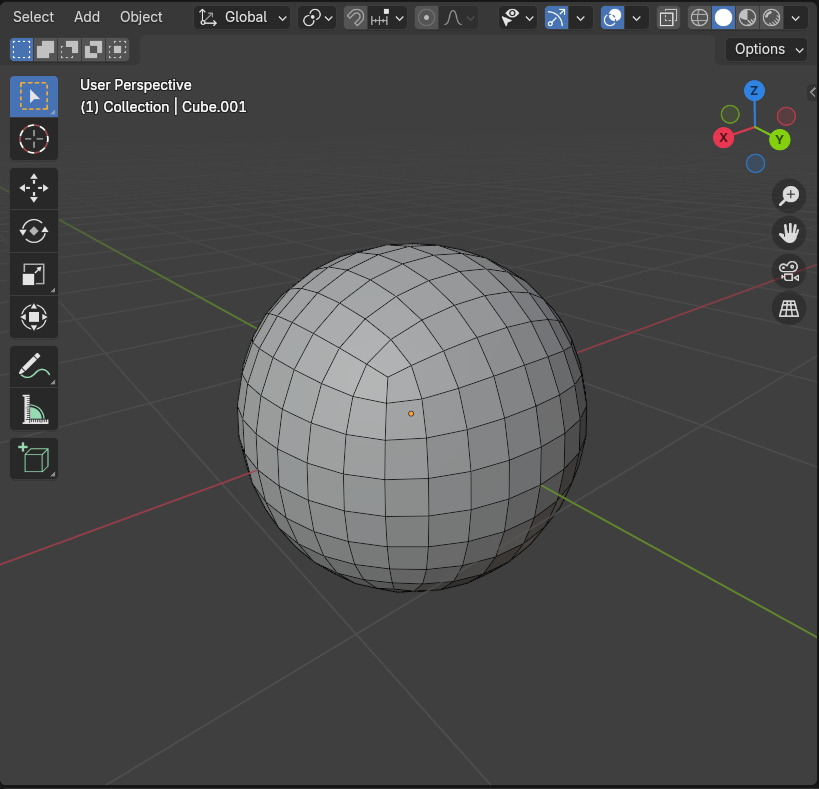 Cube에 Subdivision Surface Modifier를 적용하면 Quad Face로만 구성된, Face들이 비슷한 면적을 가진, Sphere 처럼 보이지만... 살짝 찐따 짜부러진 Sphere가 됩니다.
