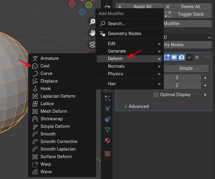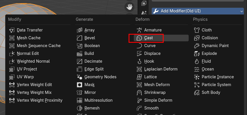 추가로 Modifier, Deform / Cast 를 적용합니다.