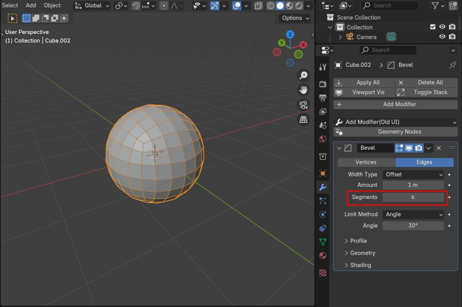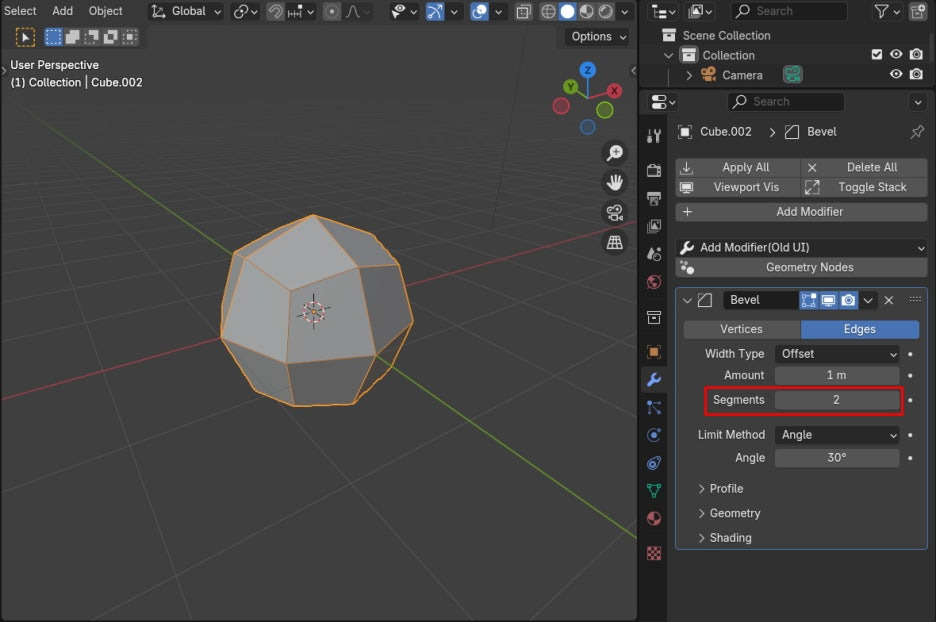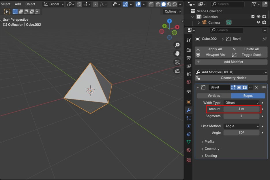 이번에는 Cube에 Bevel Modifier를 적용합니다.