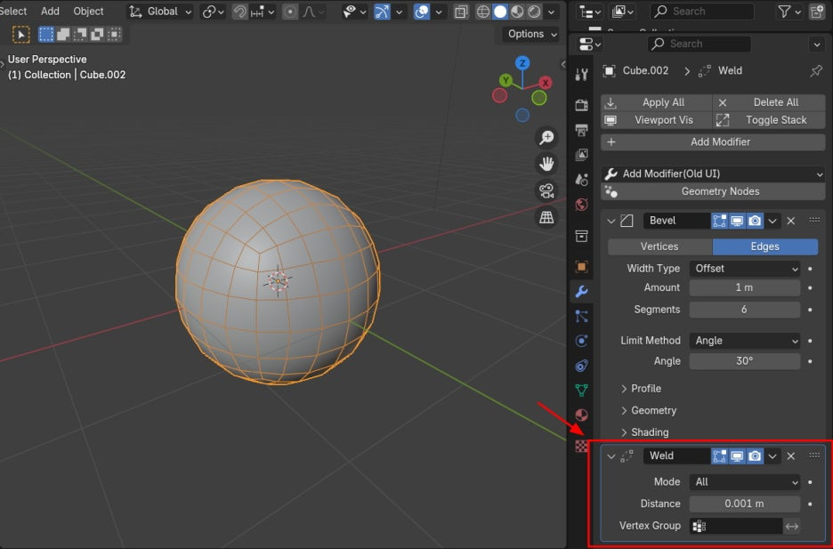 이렇게 Bevel과 Weld를 이용해서 Sphere 를 만들수 있습니다.