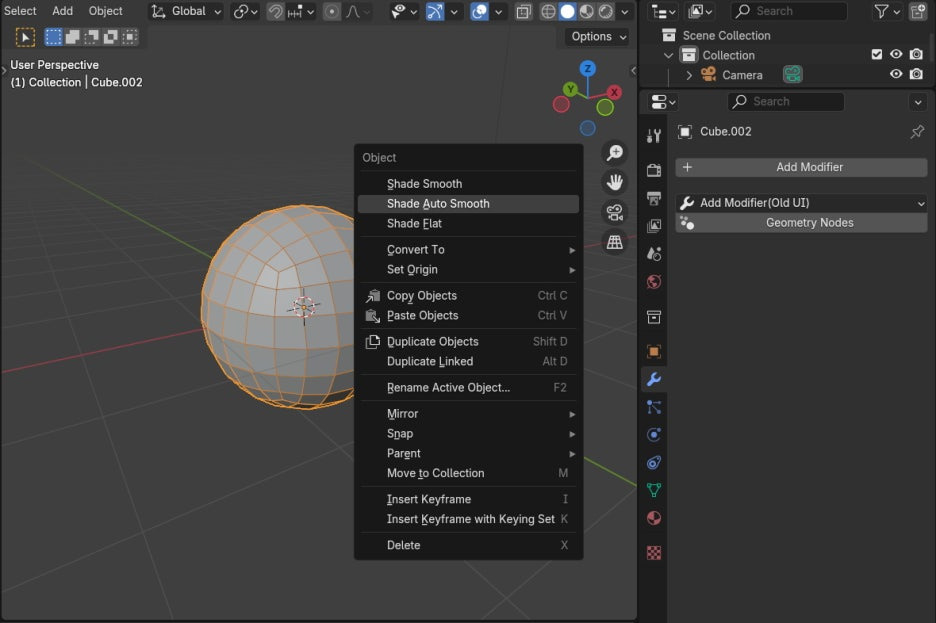 여기에 마우스 우클릭을 해서 Shade Smooth를 적용합니다. Flat한 Face를 부드럽게 보이도록 합니다.