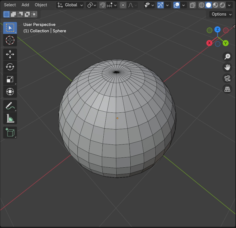 Sphere 의 Face들을 보면, 양 극 Pole 로 갈수록 Face들이 좁아지고, 끝 부분에서는 삼각형으로 모이는 것, 이것이 모델링 작업에 쓰기가 애매합니다. 그래서,