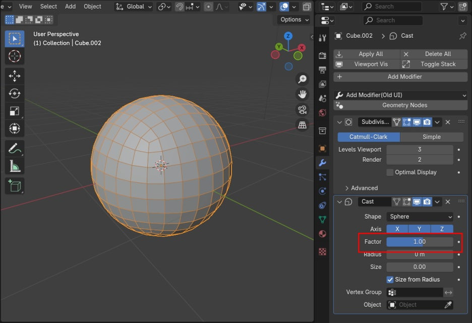 3. Subdivision Surface + Cast
