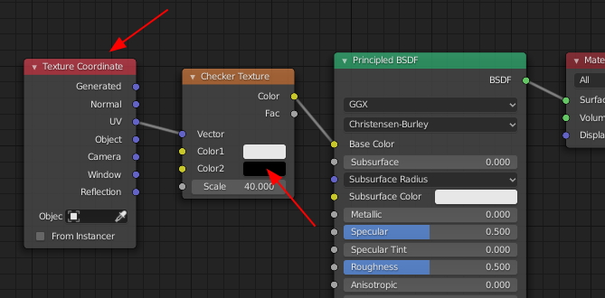 Texture Coordinate를 설치해주고, 체크이미지의 크기와 반복 횟수 등을 지정합니다.
