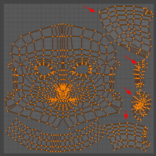 중요도에 따라, 얼굴은 좀더 크게 하고, 뒤통수나 귀는 면적을 좀 작게 나눠줬습니다.