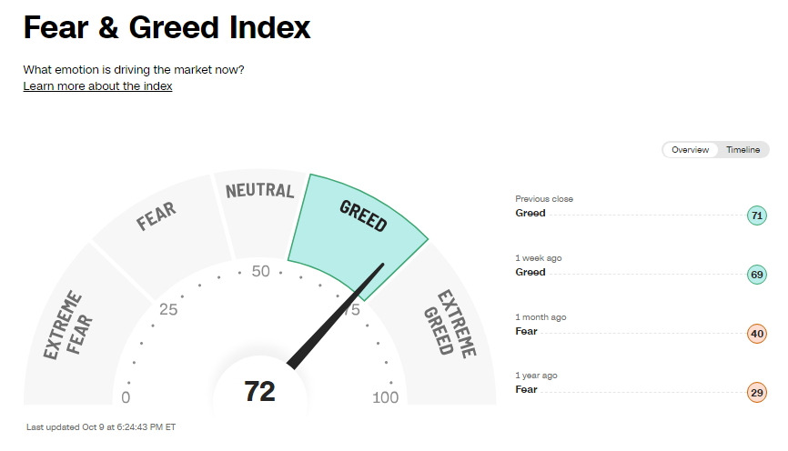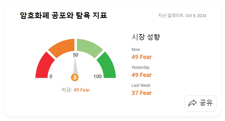 10월10일 암호화폐 공포 탐욕 지수 (Greed and Fear Index)